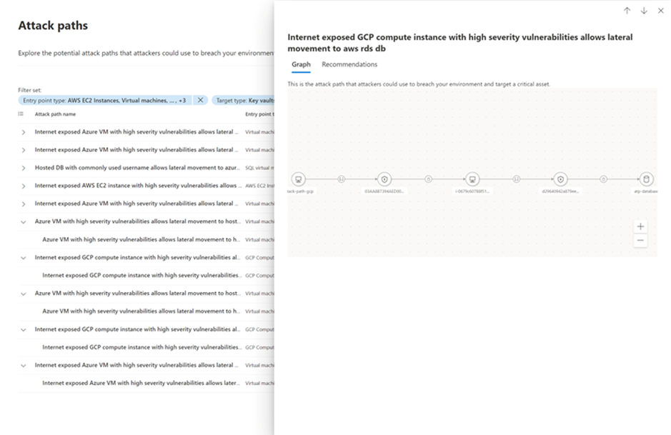 Extended Attack Path Analysis feature helps you protect your critical assets better. This feature shows you how attackers might try to get to your critical assets from possible entry points, such as weak internet-facing devices. It also shows you where they can move sideways in your network. This way, you can see which vulnerabilities and attack vectors need more attention and improve your security accordingly.