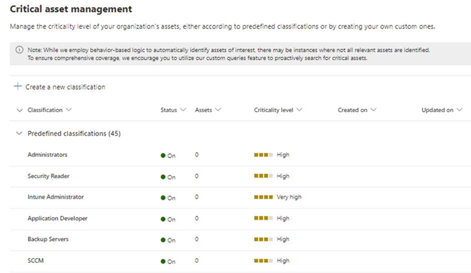 Critical Asset Management automatically labels different critical assets in your organization, like DCs (Domain Controllers), ADFS servers, etc. Microsoft plans to improve this feature by adding more types of critical assets. You can also make your own classifications based on criteria for critical assets, using the data from exposure graph.